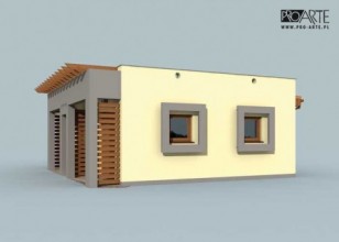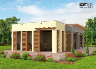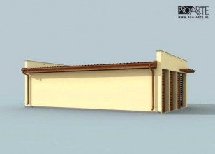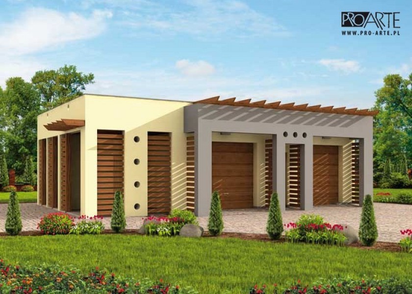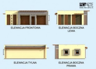 Garaż dwustanowiskowy z werandą, składem na drewno i pomieszczeniem gospodarczym.Dwie bramy garażowe o wymiarach 2,4x2,4m. Projekt garażu składa się z czterech egzemplarzy a w tym części architektonicznej, konstrukcyjnej i instalacji wewnętrznej elektrycznej. W projekcie załączone są podstawowe zestawienie stali, drewna i stolarki okienno-drzwiowej. Do projektu dołączamy bezpłatną zgodę na wprowadzenie zmian, oświadczenie projektantów o wykonaniu projektu zgodnie z obowiązującymi normami i przepisami oraz kserokopie uprawnień projektantów wraz z aktualnym wpisem do izby.