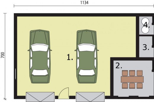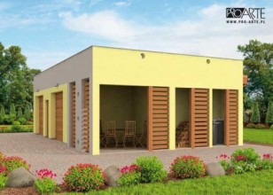 Garaż dwustanowiskowy z werandą, składem na drewno i odpady.Dwie bramy garażowe o wymiarach 2,4x2,4m. Projekt garażu składa się z czterech egzemplarzy a w tym części architektonicznej, konstrukcyjnej i instalacji wewnętrznej elektrycznej. W projekcie załączone są podstawowe zestawienie stali, drewna i stolarki okienno-drzwiowej. Do projektu dołączamy bezpłatną zgodę na wprowadzenie zmian, oświadczenie projektantów o wykonaniu projektu zgodnie z obowiązującymi normami i przepisami oraz kserokopie uprawnień projektantów wraz z aktualnym wpisem do izby.