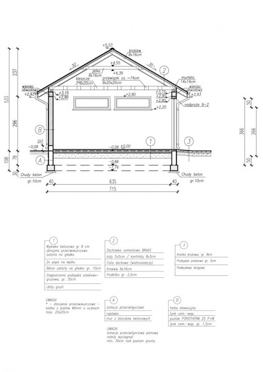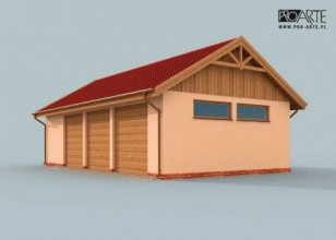 Garaż trzystanowiskowy.Trzy bramy garażowe o wymiarach 2x 2,6x2,8m 1x 2,8x2,8m Projekt garażu składa się z czterech egzemplarzy a w tym części architektonicznej, konstrukcyjnej i instalacji wewnętrznej elektrycznej. W projekcie załączone są podstawowe zestawienie stali, drewna i stolarki okienno-drzwiowej. Do projektu dołączamy bezpłatną zgodę na wprowadzenie zmian, oświadczenie projektantów o wykonaniu projektu zgodnie z obowiązującymi normami i przepisami oraz kserokopie uprawnień projektantów wraz z aktualnym wpisem do izby.