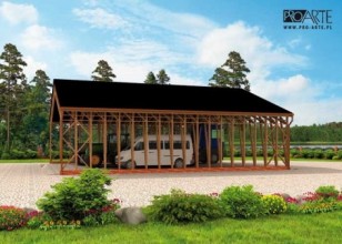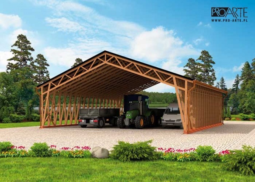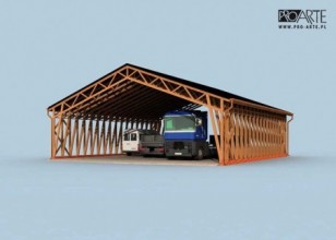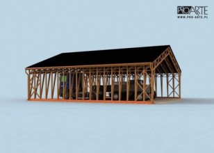 Wiata wolnostojąca, może pełnić funkcję garażową jak i również magazynową Projekt składa się z części architektonicznej, konstrukcyjnej i wewnętrznej instalacji elektrycznej. W projekcie załączone są podstawowe zestawienie stali, drewna i stolarki okienno-drzwiowej. Do projektu dołączamy bezpłatną zgodę na wprowadzenie zmian, oświadczenie projektantów o wykonaniu projektu zgodnie z obowiązującymi normami i przepisami oraz kserokopie uprawnień projektantów wraz z aktualnym wpisem do izby. W przypadku zamówienia projektu w technologii lekkiej, drewnianej konstrukcji szkieletowej, powierzchnia użytkowa budynku jest o około 7% większa.
