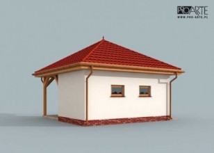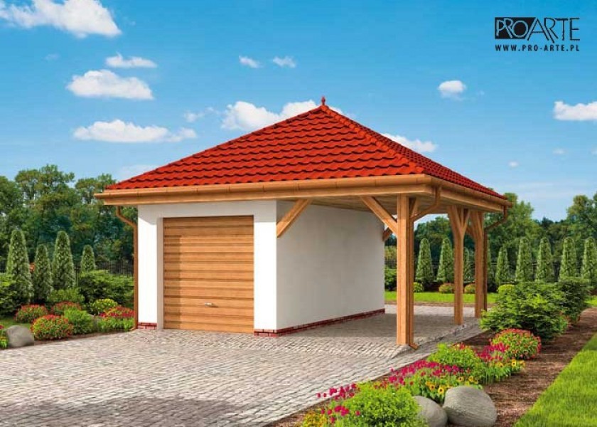 Garaż jednostanowiskowy z wiatą jednostanowiskową.Brama garażowa o wymiarach 2,4x2,4m. Projekt garażu składa się z czterech egzemplarzy a w tym części architektonicznej, konstrukcyjnej i instalacji wewnętrznej elektrycznej. W projekcie załączone są podstawowe zestawienie stali, drewna i stolarki okienno-drzwiowej. Do projektu dołączamy bezpłatną zgodę na wprowadzenie zmian, oświadczenie projektantów o wykonaniu projektu zgodnie z obowiązującymi normami i przepisami oraz kserokopie uprawnień projektantów wraz z aktualnym wpisem do izby.