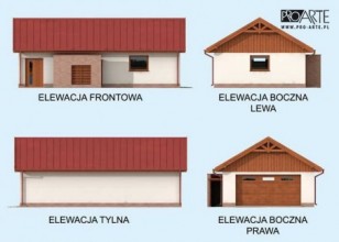 Garaż dwustanowiskowy z pomieszczeniem gospodarczym oraz ze składem na drewno i odpady.Brama garażowa o wymiarach 5,0x2,4m. Projekt garażu składa się z czterech egzemplarzy a w tym części architektonicznej, konstrukcyjnej i instalacji wewnętrznej elektrycznej. W projekcie załączone są podstawowe zestawienie stali, drewna i stolarki okienno-drzwiowej. Do projektu dołączamy bezpłatną zgodę na wprowadzenie zmian, oświadczenie projektantów o wykonaniu projektu zgodnie z obowiązującymi normami i przepisami oraz kserokopie uprawnień projektantów wraz z aktualnym wpisem do izby.