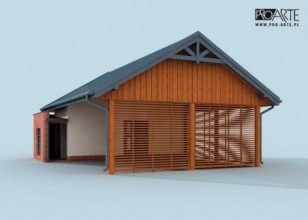 Wiata dwustanowiskowa z pomieszczeniem gospodarczym oraz ze składem na drewno i odpady. Projekt garażu składa się z czterech egzemplarzy a w tym części architektonicznej, konstrukcyjnej i instalacji wewnętrznej elektrycznej. W projekcie załączone są podstawowe zestawienie stali, drewna i stolarki okienno-drzwiowej. Do projektu dołączamy bezpłatną zgodę na wprowadzenie zmian, oświadczenie projektantów o wykonaniu projektu zgodnie z obowiązującymi normami i przepisami oraz kserokopie uprawnień projektantów wraz z aktualnym wpisem do izby.