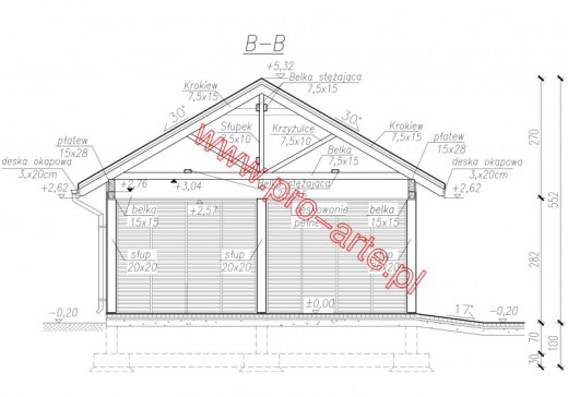 Garaż dwustanowiskowy z pomieszczeniemi gospodarczym,i wiatą garażową jednostanowiskową, składem na drewno i odpady w technologii szkieletowej, wolnostojący, parterowy. Budynek posiada jedną bramę garażową o wymiarach 2,4 x 2,4m.Zobacz garaż w wersjii murowanej.Projekt garażu składa się z czterech egzemplarzy a w tym części architektonicznej, konstrukcyjnej i instalacji wewnętrznej elektrycznej. W projekcie załączone są podstawowe zestawienie stali, drewna i stolarki okienno-drzwiowej. Do projektu dołączamy bezpłatną zgodę na wprowadzenie zmian, oświadczenie projektantów o wykonaniu projektu zgodnie z obowiązującymi normami i przepisami oraz kserokopie uprawnień projektantów wraz z aktualnym wpisem do izby.
