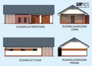 Garaż dwustanowiskowy z pomieszczeniem gospodarczym, werandą i składem na drewno i odpady.Dwie bramy garażowe o wymiarach 2,4x2,4m. Projekt garażu składa się z czterech egzemplarzy a w tym części architektonicznej, konstrukcyjnej i instalacji wewnętrznej elektrycznej. W projekcie załączone są podstawowe zestawienie stali, drewna i stolarki okienno-drzwiowej. Do projektu dołączamy bezpłatną zgodę na wprowadzenie zmian, oświadczenie projektantów o wykonaniu projektu zgodnie z obowiązującymi normami i przepisami oraz kserokopie uprawnień projektantów wraz z aktualnym wpisem do izby.