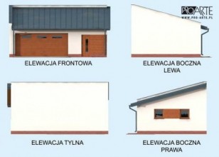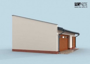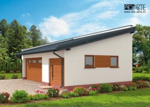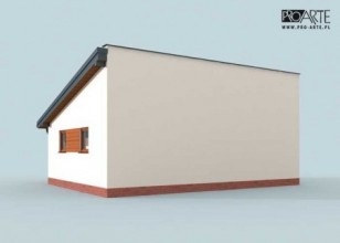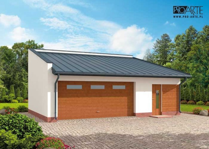 Garaż dwustanowiskowy z pomieszczeniem gospodarczym.Brama garażowa o wymiarach 5,0x2,4m.  Projekt garażu składa się z czterech egzemplarzy a w tym części architektonicznej, konstrukcyjnej i instalacji wewnętrznej elektrycznej. W projekcie załączone są podstawowe zestawienie stali, drewna i stolarki okienno-drzwiowej. Do projektu dołączamy bezpłatną zgodę na wprowadzenie zmian, oświadczenie projektantów o wykonaniu projektu zgodnie z obowiązującymi normami i przepisami oraz kserokopie uprawnień projektantów wraz z aktualnym wpisem do izby.