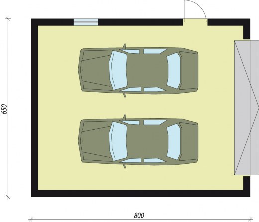 Garaż dwustanowiskowy.Brama garażowa o wymiarach 5,0x2,4m.  Projekt garażu składa się z czterech egzemplarzy a w tym części architektonicznej, konstrukcyjnej i instalacji wewnętrznej elektrycznej. W projekcie załączone są podstawowe zestawienie stali, drewna i stolarki okienno-drzwiowej. Do projektu dołączamy bezpłatną zgodę na wprowadzenie zmian, oświadczenie projektantów o wykonaniu projektu zgodnie z obowiązującymi normami i przepisami oraz kserokopie uprawnień projektantów wraz z aktualnym wpisem do izby.