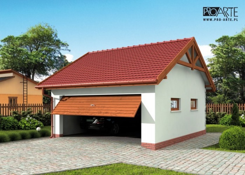 Garaż dwustanowiskowy.Brama garażowa o wymiarach 5,0x2,4mProjekt garażu składa się z czterech egzemplarzy a w tym części architektonicznej, konstrukcyjnej i instalacji wewnętrznej elektrycznej. W projekcie załączone są podstawowe zestawienie stali, drewna i stolarki okienno-drzwiowej. Do projektu dołączamy bezpłatną zgodę na wprowadzenie zmian, oświadczenie projektantów o wykonaniu projektu zgodnie z obowiązującymi normami i przepisami oraz kserokopie uprawnień projektantów wraz z aktualnym wpisem do izby.