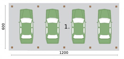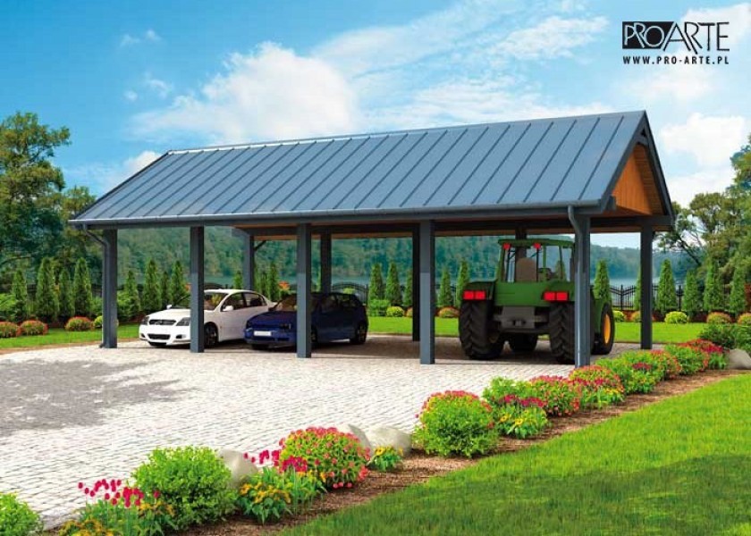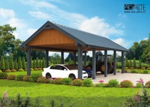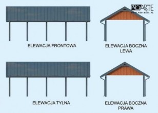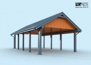 Wiata garażowa czterostanowiskowa.Projekt wiaty składa się z czterech egzemplarzy a w tym części architektonicznej, konstrukcyjnej. W projekcie załączone są podstawowe zestawienie stali, drewna. Do projektu dołączamy bezpłatną zgodę na wprowadzenie zmian, oświadczenie projektantów o wykonaniu projektu zgodnie z obowiązującymi normami i przepisami oraz kserokopie uprawnień projektantów wraz z aktualnym wpisem do izby.