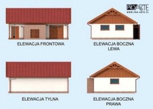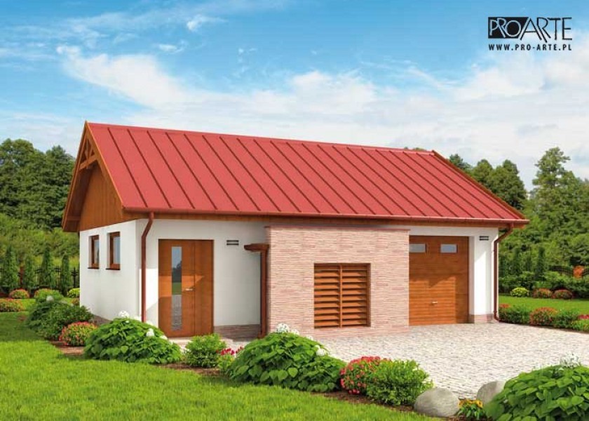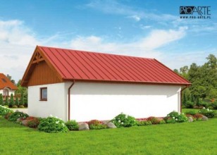 Garaż jednostanowiskowy z pomieszczeniem gospodarczym, składem na drewno i odpady.Brama garażowa o wymiarach 2,4x2,4m. Projekt garażu składa się z czterech egzemplarzy a w tym części architektonicznej, konstrukcyjnej i instalacji wewnętrznej elektrycznej. W projekcie załączone są podstawowe zestawienie stali, drewna i stolarki okienno-drzwiowej. Do projektu dołączamy bezpłatną zgodę na wprowadzenie zmian, oświadczenie projektantów o wykonaniu projektu zgodnie z obowiązującymi normami i przepisami oraz kserokopie uprawnień projektantów wraz z aktualnym wpisem do izby.