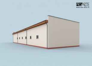 Garaż / magazyn z pomieszczeniami gospodarczymi.Dwie bramy garażowe o wymiarach 4,4x3,5m. Przyziemie: garaż/magazyn, wc, łazienka, 3 pomieszczenia gospodarcze.Poddasze: pomieszczenia gospodarsze. Projekt garażu składa się z czterech egzemplarzy a w tym części architektonicznej, konstrukcyjnej i instalacji wewnętrznej elektrycznej. W projekcie załączone są podstawowe zestawienie stali, drewna i stolarki okienno-drzwiowej. Do projektu dołączamy bezpłatną zgodę na wprowadzenie zmian, oświadczenie projektantów o wykonaniu projektu zgodnie z obowiązującymi normami i przepisami oraz kserokopie uprawnień projektantów wraz z aktualnym wpisem do izby.