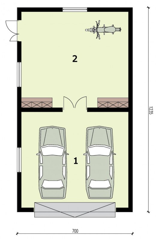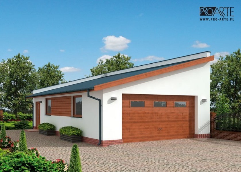 Garaż dwustanowiskowy z pomieszczeniem gospodarczym.Brama garażowa o wymiarach 5,0x2,4m. Projekt garażu składa się z czterech egzemplarzy a w tym części architektonicznej, konstrukcyjnej i instalacji wewnętrznej elektrycznej. W projekcie załączone są podstawowe zestawienie stali, drewna i stolarki okienno-drzwiowej. Do projektu dołączamy bezpłatną zgodę na wprowadzenie zmian, oświadczenie projektantów o wykonaniu projektu zgodnie z obowiązującymi normami i przepisami oraz kserokopie uprawnień projektantów wraz z aktualnym wpisem do izby.