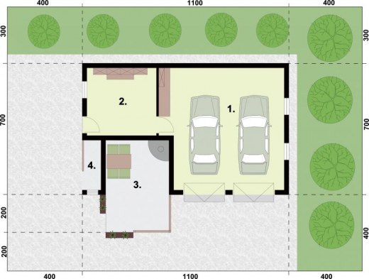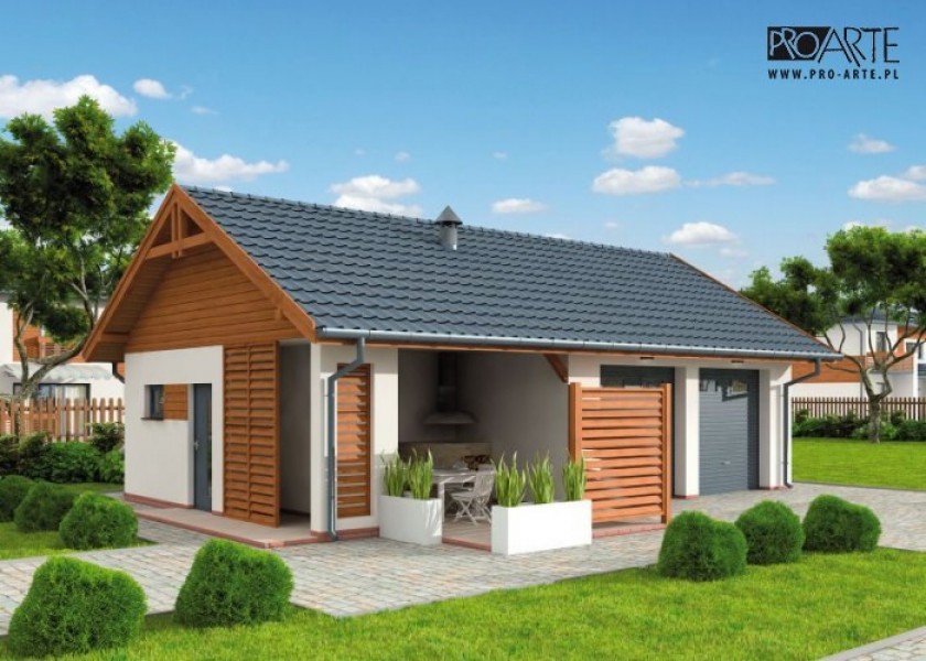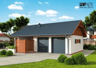 Garaż dwustanowiskowy z pomieszczeiem gospodarczym, altaną ogrodową z grillem i składem na drewnoDwie bramy garażowe o wymiarach 2,35x2,4m. Projekt garażu składa się z czterech egzemplarzy a w tym części architektonicznej, konstrukcyjnej i instalacji wewnętrznej elektrycznej. W projekcie załączone są podstawowe zestawienie stali, drewna i stolarki okienno-drzwiowej. Do projektu dołączamy bezpłatną zgodę na wprowadzenie zmian, oświadczenie projektantów o wykonaniu projektu zgodnie z obowiązującymi normami i przepisami oraz kserokopie uprawnień projektantów wraz z aktualnym wpisem do izby.