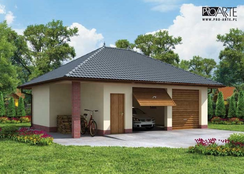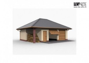 Garaż dwustanowiskowy z pomieszczeniem gospodarczym. Garaż posiada dodatkowo skład na drewno.Brama garażowa o wymiarach 2,4x2,25m. Projekt garażu składa się z czterech egzemplarzy a w tym części architektonicznej, konstrukcyjnej i instalacji wewnętrznej elektrycznej. W projekcie załączone są podstawowe zestawienie stali, drewna i stolarki okienno-drzwiowej. Do projektu dołączamy bezpłatną zgodę na wprowadzenie zmian, oświadczenie projektantów o wykonaniu projektu zgodnie z obowiązującymi normami i przepisami oraz kserokopie uprawnień projektantów wraz z aktualnym wpisem do izby.