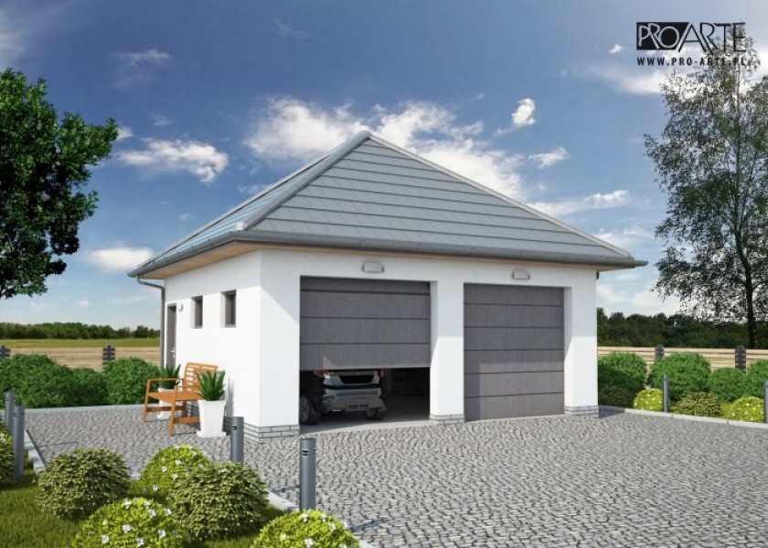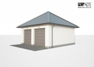 Garaż dwustanowiskowy z dachem czterospadowym.Dwie bramy garażowe o wymiarach 2,3x2,4m. Projekt garażu składa się z czterech egzemplarzy a w tym części architektonicznej, konstrukcyjnej i instalacji wewnętrznej elektrycznej. W projekcie załączone są podstawowe zestawienie stali, drewna i stolarki okienno-drzwiowej. Do projektu dołączamy bezpłatną zgodę na wprowadzenie zmian, oświadczenie projektantów o wykonaniu projektu zgodnie z obowiązującymi normami i przepisami oraz kserokopie uprawnień projektantów wraz z aktualnym wpisem do izby.