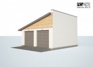 Garaż dwustanowiskowy z dachem jednospadowymBudynek posiada dwie bramy garażowe o wymiarach 2,3x2,4m Projekt garażu składa się z czterech egzemplarzy a w tym części architektonicznej, konstrukcyjnej i instalacji wewnętrznej elektrycznej. W projekcie załączone są podstawowe zestawienie stali, drewna i stolarki okienno-drzwiowej. Do projektu dołączamy bezpłatną zgodę na wprowadzenie zmian, oświadczenie projektantów o wykonaniu projektu zgodnie z obowiązującymi normami i przepisami oraz kserokopie uprawnień projektantów wraz z aktualnym wpisem do izby.