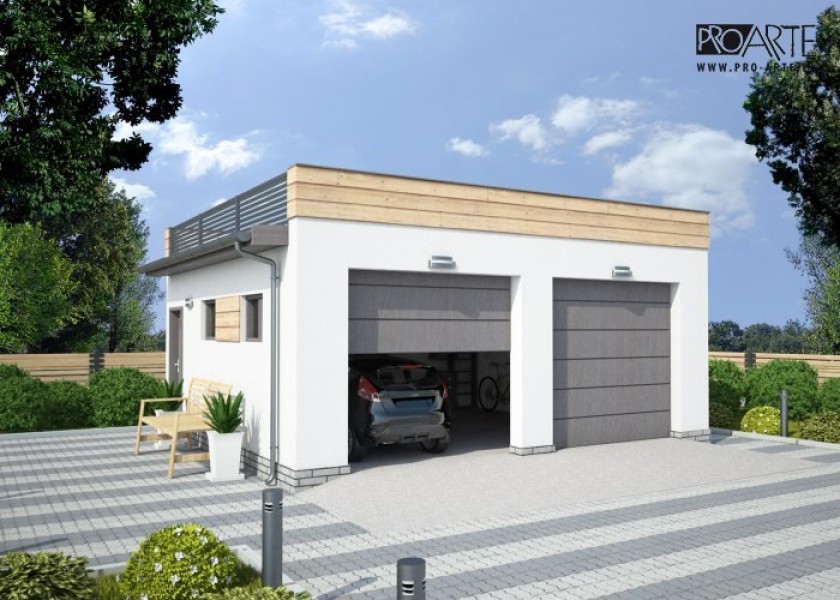 Garaż dwustanowiskowy z dachem płaskim. Budynek posida dwie bramy garażowe o wymiarach 2,3x2,4mProjekt garażu składa się z czterech egzemplarzy a w tym części architektonicznej, konstrukcyjnej i instalacji wewnętrznej elektrycznej. W projekcie załączone są podstawowe zestawienie stali, drewna i stolarki okienno-drzwiowej. Do projektu dołączamy bezpłatną zgodę na wprowadzenie zmian, oświadczenie projektantów o wykonaniu projektu zgodnie z obowiązującymi normami i przepisami oraz kserokopie uprawnień projektantów wraz z aktualnym wpisem do izby.