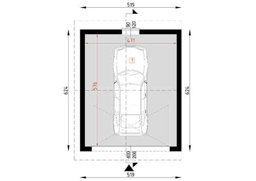 Garaż samochodowy jednostanowiskowy w technologii murowanej z możliwością dostawienia do budynku.