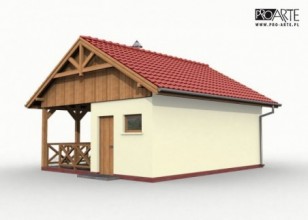 Garaż jednostanowiskowy w technologii szkieletowej, wolnostojący. Brama garażowa o wymiarach 2400x2400. Garaż posiada dodatkowe pomieszczenie gospodarcze i altanę.Zobacz garaż w wersjii murowanej.Projekt garażu składa się z czterech egzemplarzy a w tym części architektonicznej, konstrukcyjnej i instalacji wewnętrznej elektrycznej. W projekcie załączone są podstawowe zestawienie stali, drewna i stolarki okienno-drzwiowej. Do projektu dołączamy bezpłatną zgodę na wprowadzenie zmian, oświadczenie projektantów o wykonaniu projektu zgodnie z obowiązującymi normami i przepisami oraz kserokopie uprawnień projektantów wraz z aktualnym wpisem do izby.