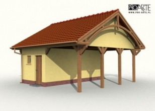 Projekt wiaty jednostanowiskowej z budynkiem gospodarczym.