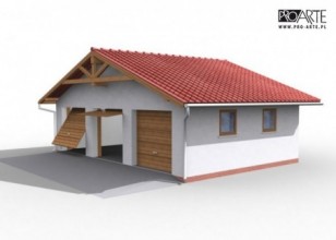 Garaż trzystanowiskowy w technologii szkieletowej, wolnostojący, parterowy. Trzy bramy garażowe o wymiarach 2,4x2,2m. Projekt garażu składa się z czterech egzemplarzy a w tym części architektonicznej, konstrukcyjnej i instalacji wewnętrznej elektrycznej. W projekcie załączone są podstawowe zestawienie stali, drewna i stolarki okienno-drzwiowej. Do projektu dołączamy bezpłatną zgodę na wprowadzenie zmian, oświadczenie projektantów o wykonaniu projektu zgodnie z obowiązującymi normami i przepisami oraz kserokopie uprawnień projektantów wraz z aktualnym wpisem do izby.