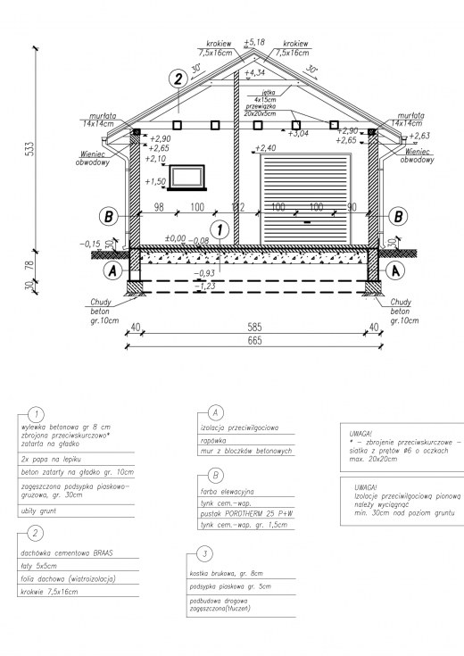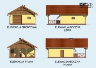 Garaż jednostanowiskowy z pomieszczeniem gospodarczym. Garaż posiada dodatkowo altanę z grillem i WC.Brama garażowa o wymiarach 2,4x2,4m. Projekt garażu składa się z czterech egzemplarzy a w tym części architektonicznej, konstrukcyjnej i instalacji wewnętrznej elektrycznej. W projekcie załączone są podstawowe zestawienie stali, drewna i stolarki okienno-drzwiowej. Do projektu dołączamy bezpłatną zgodę na wprowadzenie zmian, oświadczenie projektantów o wykonaniu projektu zgodnie z obowiązującymi normami i przepisami oraz kserokopie uprawnień projektantów wraz z aktualnym wpisem do izby.
