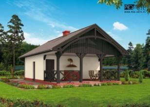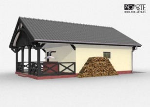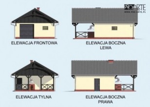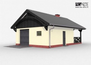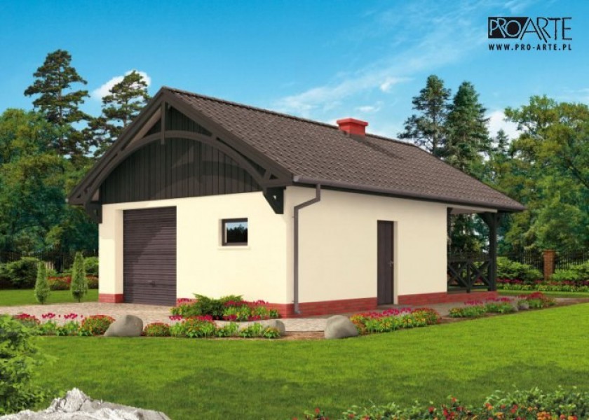 Garaż jednostanowiskowy w technologii szkieletowej, wolnostojący. Brama garażowa o wymiarach 2400x2400. Garaż posiada dodatkowe pomieszczenie gospodarcze, wc i altanę.Zobacz garaż w wersjii murowanej.Projekt garażu składa się z czterech egzemplarzy a w tym części architektonicznej, konstrukcyjnej i instalacji wewnętrznej elektrycznej i sanitarnej. W projekcie załączone są podstawowe zestawienie stali, drewna i stolarki okienno-drzwiowej. Do projektu dołączamy bezpłatną zgodę na wprowadzenie zmian, oświadczenie projektantów o wykonaniu projektu zgodnie z obowiązującymi normami i przepisami oraz kserokopie uprawnień projektantów wraz z aktualnym wpisem do izby.