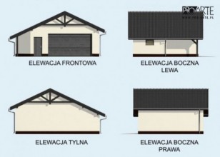 Garaż dwustanowiskowy w technologii szkieletowej, wolnostojący, parterowy. Brama garażowa o wymiarach 5000x2400. Garaż posiada dodatkowe pomieszczenie gospodarcze i skład na drewno.Zobacz garaż w wersjii murowanej.Projekt garażu składa się z czterech egzemplarzy a w tym części architektonicznej, konstrukcyjnej i instalacji wewnętrznej elektrycznej. W projekcie załączone są podstawowe zestawienie stali, drewna i stolarki okienno-drzwiowej. Do projektu dołączamy bezpłatną zgodę na wprowadzenie zmian, oświadczenie projektantów o wykonaniu projektu zgodnie z obowiązującymi normami i przepisami oraz kserokopie uprawnień projektantów wraz z aktualnym wpisem do izby.