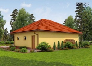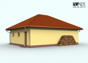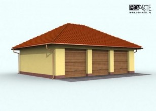 Garaż trzystanowiskowy, wolnostojący, parterowy z pomieszczeniem gospodarczym.Bramy garażowe o wymiarach otworu w murze 2400x2400. Projekt składa się z części architektonicznej, konstrukcyjnej i wewnętrznej instalacji elektrycznej. W projekcie załączone są podstawowe zestawienie stali, drewna i stolarki okienno-drzwiowej. Do projektu dołączamy bezpłatną zgodę na wprowadzenie zmian, oświadczenie projektantów o wykonaniu projektu zgodnie z obowiązującymi normami i przepisami oraz kserokopie uprawnień projektantów wraz z aktualnym wpisem do izby. W przypadku zamówienia projektu w technologii lekkiej, drewnianej konstrukcji szkieletowej, powierzchnia użytkowa budynku jest o około 7% większa.
