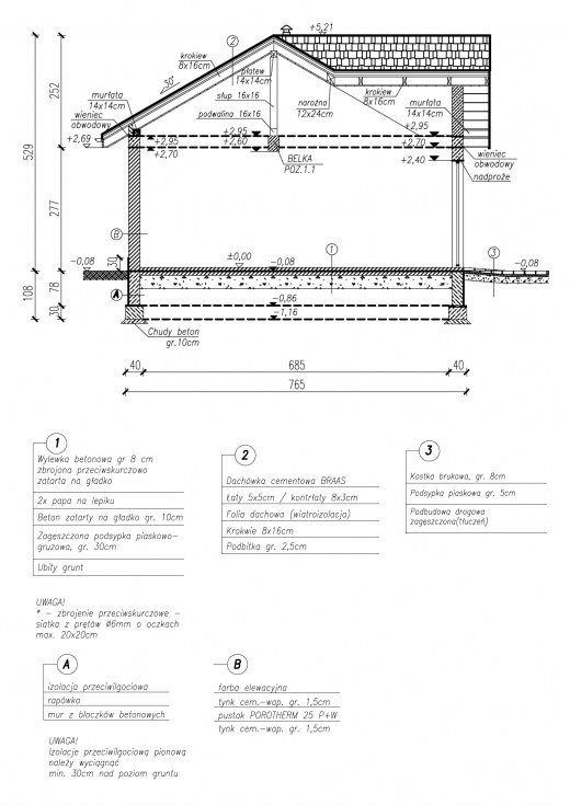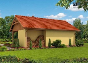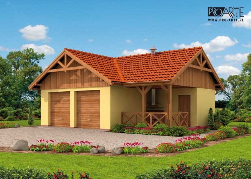 Garaż dwustanowiskowy z pomieszczeniem gospodarczym, altaną ogrodową z grillem oraz składem na drewno.Dwie bramy garażowe o wymiarach 2,25x2,4m. Projekt garażu składa się z czterech egzemplarzy a w tym części architektonicznej, konstrukcyjnej i instalacji wewnętrznej elektrycznej. W projekcie załączone są podstawowe zestawienie stali, drewna i stolarki okienno-drzwiowej. Do projektu dołączamy bezpłatną zgodę na wprowadzenie zmian, oświadczenie projektantów o wykonaniu projektu zgodnie z obowiązującymi normami i przepisami oraz kserokopie uprawnień projektantów wraz z aktualnym wpisem do izby.