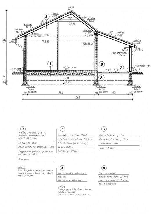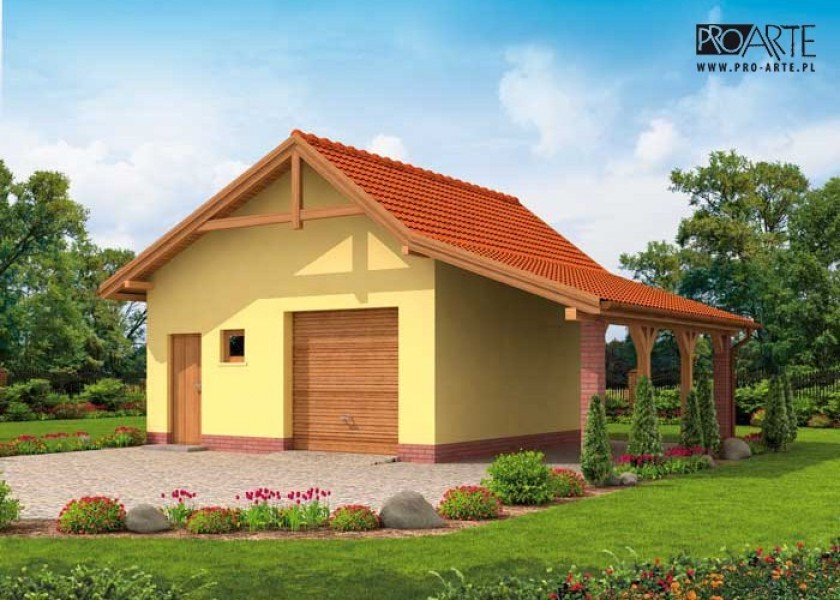Garaż jednostanowiskowy z pomieszczeniem gospodarczym, składem na drewno i wiata garażową. Bramy garażowe o wymiarach otworu w murze 2400x2400. Projekt składa się z części architektonicznej, konstrukcyjnej i wewnętrznej instalacji elektrycznej. W projekcie załączone są podstawowe zestawienie stali, drewna i stolarki okienno-drzwiowej. Do projektu dołączamy bezpłatną zgodę na wprowadzenie zmian, oświadczenie projektantów o wykonaniu projektu zgodnie z obowiązującymi normami i przepisami oraz kserokopie uprawnień projektantów wraz z aktualnym wpisem do izby. W przypadku zamówienia projektu w technologii lekkiej, drewnianej konstrukcji szkieletowej, powierzchnia użytkowa budynku jest o około 7% większa.