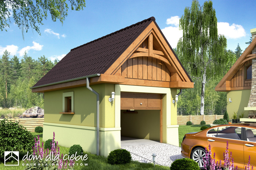 UWAGA: PROJEKT KONCEPCYJNY! Zapytaj o termin realizacji. Garaż G7 jest idealnym uzupełnieniem popularnego projektu AGATKA. Jest to wolno stojący garaż jednostanowiskowy, zaprojektowany w technologii murowanej z pustaków ceramicznych z dachem o konstrukcji drewnianej pokrytym dachówką ceramiczną lub cementową. Wysokość użytkowa 2,5 cm. Brama wjazdowa zaprojektowano jako podnoszoną o wym. 2,5 m x 2,2 m. Wykończenia: elewacje - tynk akrylowy, podmurówka - tynk mozaikowy.