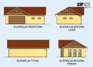 Garaż dwustanowiskowy z pomieszczeniem rekreacyjnym.Brama garażowa o wymiarach 2,5x2,4m. Projekt garażu składa się z czterech egzemplarzy a w tym części architektonicznej, konstrukcyjnej i instalacji wewnętrznej elektrycznej. W projekcie załączone są podstawowe zestawienie stali, drewna i stolarki okienno-drzwiowej. Do projektu dołączamy bezpłatną zgodę na wprowadzenie zmian, oświadczenie projektantów o wykonaniu projektu zgodnie z obowiązującymi normami i przepisami oraz kserokopie uprawnień projektantów wraz z aktualnym wpisem do izby.