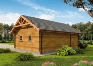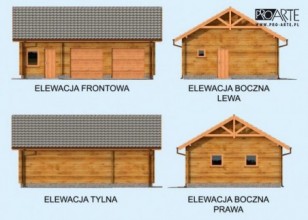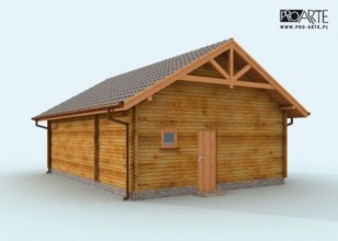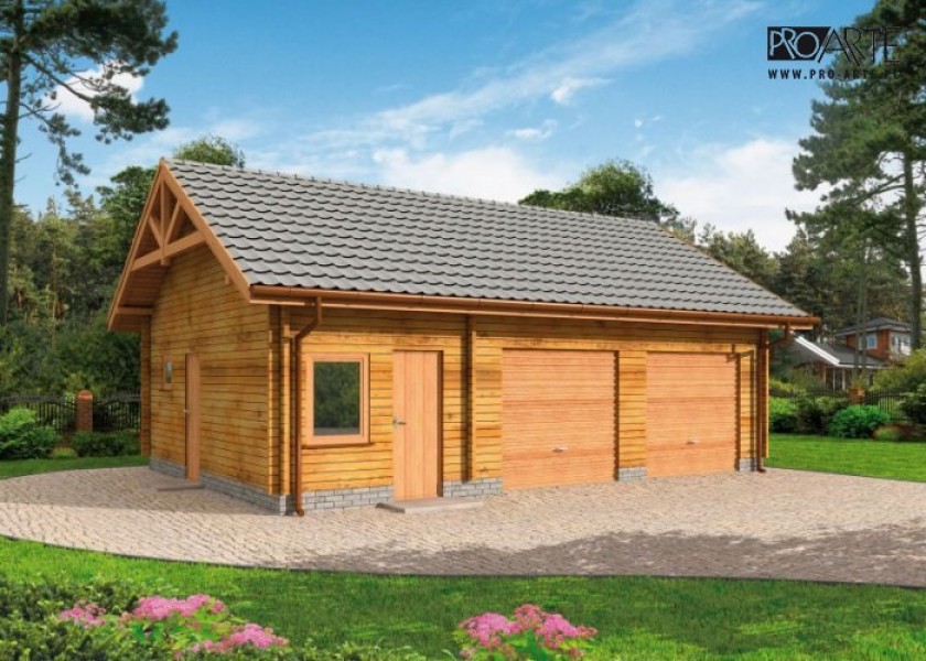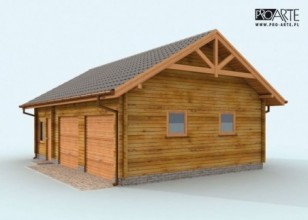 Garaż z bali drewnianych, dwustanowiskowy z pomieszczeniami gospodarczymi.Dwie bramy o wymiarach 2,4x2,4m. Projekt garażu składa się z czterech egzemplarzy a w tym części architektonicznej, konstrukcyjnej i instalacji wewnętrznej elektrycznej. W projekcie załączone są podstawowe zestawienie stali, drewna i stolarki okienno-drzwiowej. Do projektu dołączamy bezpłatną zgodę na wprowadzenie zmian, oświadczenie projektantów o wykonaniu projektu zgodnie z obowiązującymi normami i przepisami oraz kserokopie uprawnień projektantów wraz z aktualnym wpisem do izby.