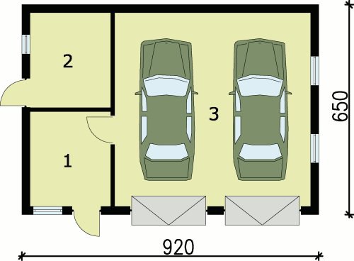 G84 garaż dwustanowiskowy z pomieszczeniami gospodarczymi