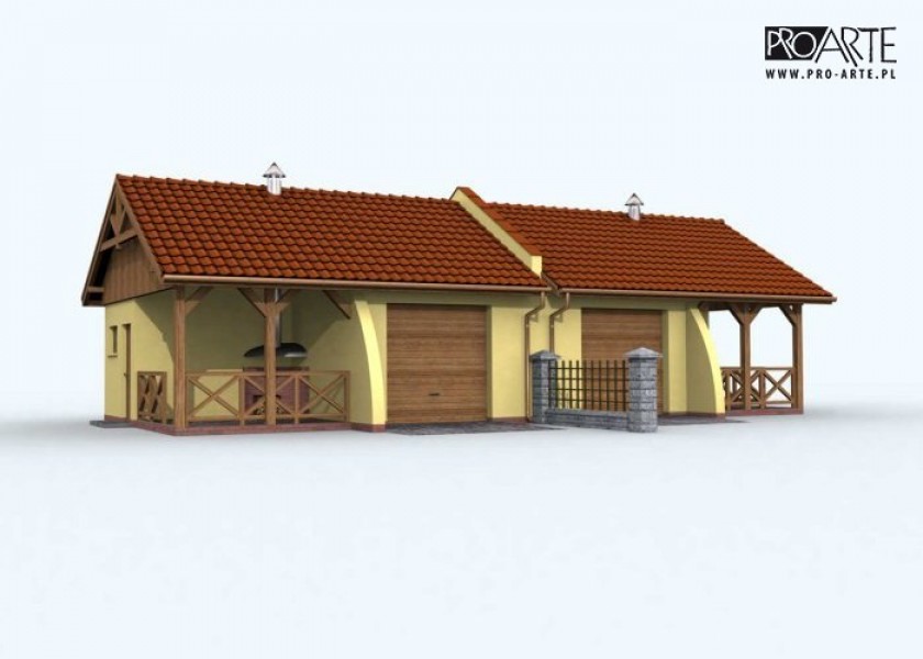 Projekt garażu bliźniaczego z pomieszczeniem gospodarczym i altaną ogrodową z grillem