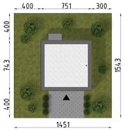 <b>Garaż wolno stojący</b>, zaprojektowany w technologii murowej, z miejscem na jeden samochód, o prostej bryle przykrytej dwuspadowym dachem. Na bocznej ścianie przewidziano dodatkowe, zadaszone wejście.<br><b>Projekty garaży i budynków gospodarczych</b> z Kolekcji Muratora dostępne są także w wersji lustrzanego odbicia (nie dotyczy budynków symetrycznych). <br>Nazwa własna w dokumentacji: Budynek gospodarczy