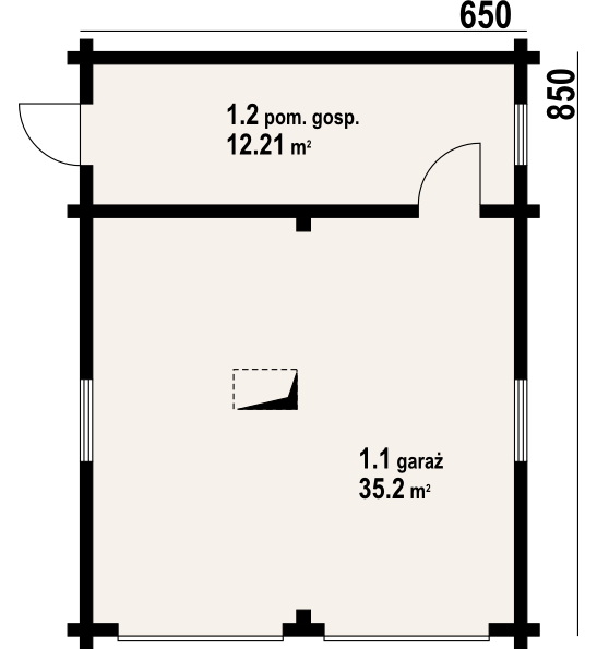 Garaż dwustanowiskowy z pomieszczeniem gospodarczym.