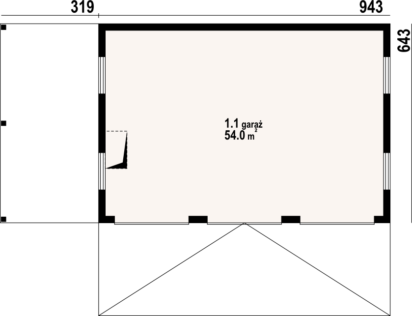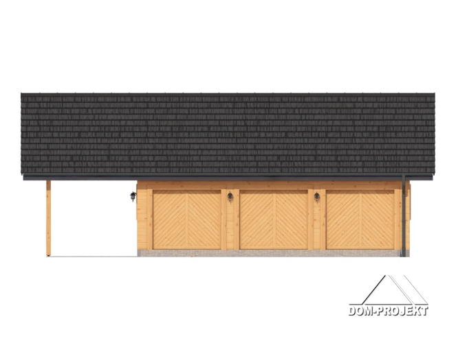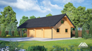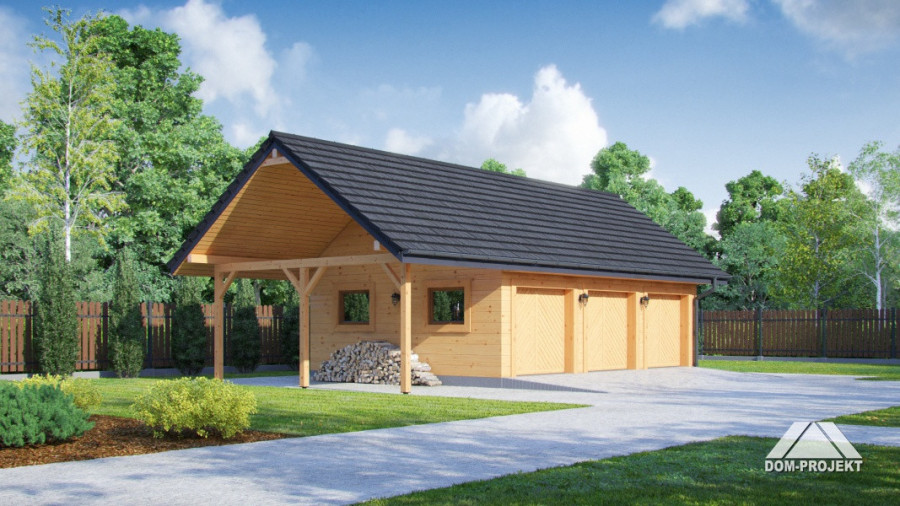 Garaż na trzy samochody i wiata garażowa. Konstrukcja budynku - szkielet drewniany. Poddasze nieużytkowe.