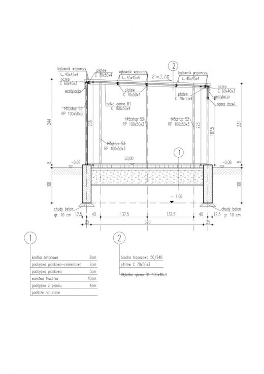 Projekt garażu blaszanego jednostanowiskowego. Brama garażowa o wymiarach 2,50x2,125m Projekt garażu składa się z czterech egzemplarzy a w tym części architektonicznej, konstrukcyjnej i instalacji wewnętrznej elektrycznej. Do projektu dołączamy bezpłatną zgodę na wprowadzenie zmian, oświadczenie projektantów o wykonaniu projektu zgodnie z obowiązującymi normami i przepisami oraz kserokopie uprawnień projektantów wraz z aktualnym wpisem do izby.