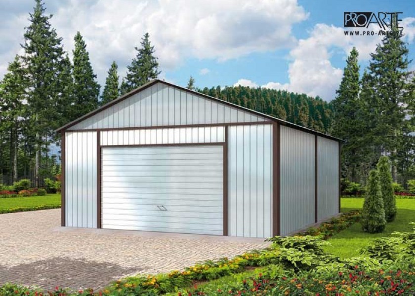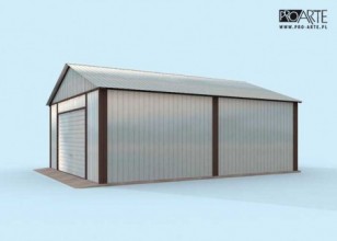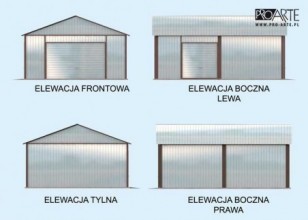 Projekt garażu blaszanego dwustanowiskowego. Dwie bramy garażowe o wymiarach 2,5x2,5m i 4,0x2,5m. Projekt garażu składa się z czterech egzemplarzy a w tym części architektonicznej, konstrukcyjnej i instalacji wewnętrznej elektrycznej. Do projektu dołączamy bezpłatną zgodę na wprowadzenie zmian, oświadczenie projektantów o wykonaniu projektu zgodnie z obowiązującymi normami i przepisami oraz kserokopie uprawnień projektantów wraz z aktualnym wpisem do izby.