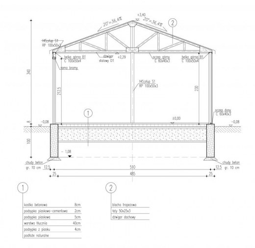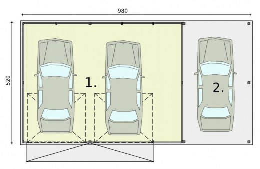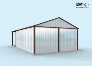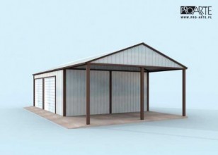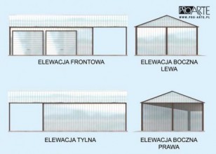 Projekt garażu blaszanegoy z wiatą. Dwie bramy garażowe o wymiarach 2,50x2,125m Projekt garażu składa się z czterech egzemplarzy a w tym części architektonicznej, konstrukcyjnej i instalacji wewnętrznej elektrycznej. Do projektu dołączamy bezpłatną zgodę na wprowadzenie zmian, oświadczenie projektantów o wykonaniu projektu zgodnie z obowiązującymi normami i przepisami oraz kserokopie uprawnień projektantów wraz z aktualnym wpisem do izby.