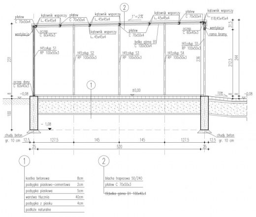 Projekt garażu blaszanego jednostanowiskowego. Brama garażowa o wymiarach 2,50x2,125mProjekt garażu składa się z czterech egzemplarzy a w tym części architektonicznej, konstrukcyjnej i instalacji wewnętrznej elektrycznej. Do projektu dołączamy bezpłatną zgodę na wprowadzenie zmian, oświadczenie projektantów o wykonaniu projektu zgodnie z obowiązującymi normami i przepisami oraz kserokopie uprawnień projektantów wraz z aktualnym wpisem do izby.