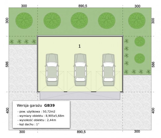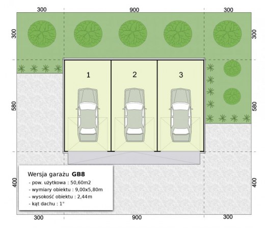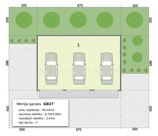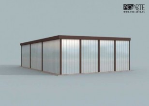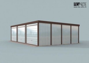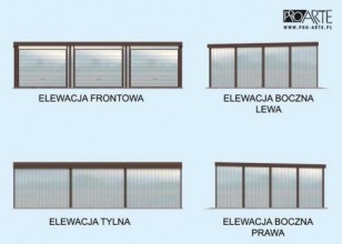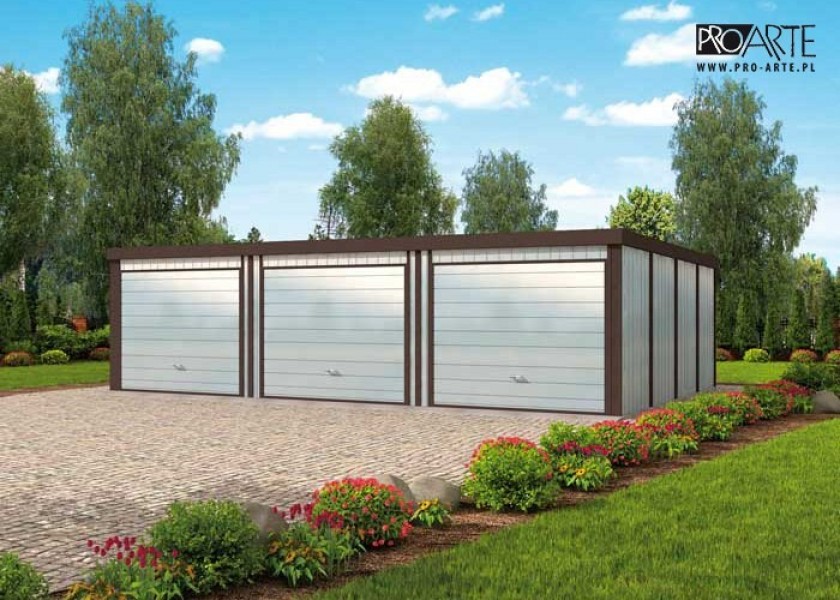 Projekt garażu blaszanego trzystanowiskowego. Trzy bramy garażowe o wymiarach 2,50x2,125 Projekt garażu składa się z czterech egzemplarzy a w tym części architektonicznej, konstrukcyjnej i instalacji wewnętrznej elektrycznej. Do projektu dołączamy bezpłatną zgodę na wprowadzenie zmian, oświadczenie projektantów o wykonaniu projektu zgodnie z obowiązującymi normami i przepisami oraz kserokopie uprawnień projektantów wraz z aktualnym wpisem do izby.