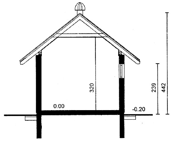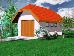 Budynek garażowy jednostanowiskowyŚciany zewnętrzne: gr. 24 cm z pustaków z betonu komórkowego; dach: dwuspadowy, o nachyleniu 37 stopni, więźba krokwiowo-jętkowa, krycie dachówką