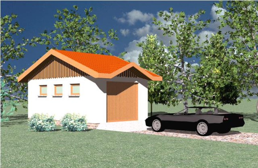 Budynek garażowy jednostanowiskowyŚciany zewnętrzne: gr. 25 cm z cegły ceramicznej kratówki; dach: dwuspadowy o nachyleniu 12 i 19 stopni lub 22 stopni, więźba krokwiowo-płatwiowa, krycie blachą dachówkową lub gontami bitumicznymi