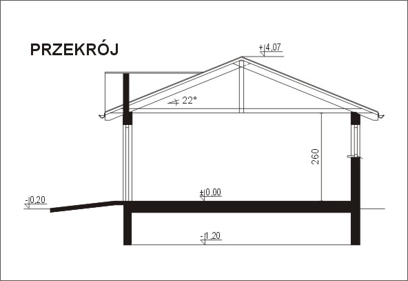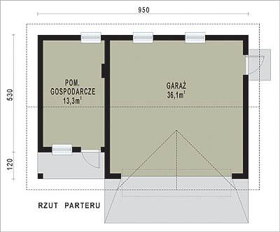 Budynek garażowy dwustanowiskowy z pomieszczeniem gospodarczymDach: dwuspadowy o nachyleniu 22 stopni
