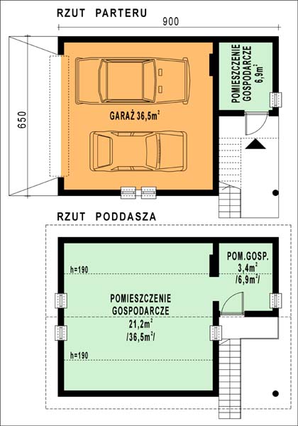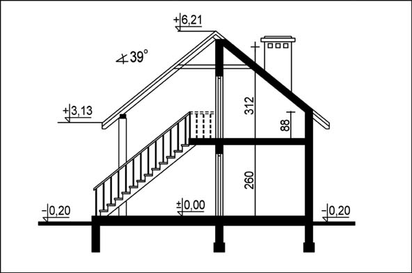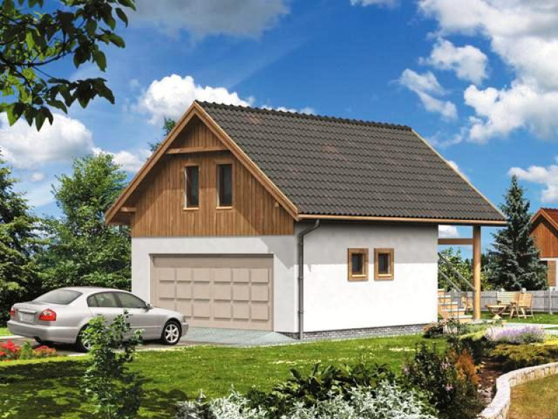Budynek garażowo-gospodarczy dwustanowiskowy z poddaszemDach: dwuspadowy o nachyleniu 39 stopni
