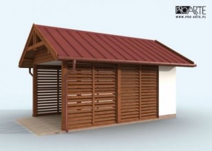 Wiata garażowa jednostanowiskowa z składem na drewno.Projekt składa się z części architektonicznej, konstrukcyjnej i wewnętrznej instalacji elektrycznej. W projekcie załączone są podstawowe zestawienie stali, drewnaj. Do projektu dołączamy bezpłatną zgodę na wprowadzenie zmian, oświadczenie projektantów o wykonaniu projektu zgodnie z obowiązującymi normami i przepisami oraz kserokopie uprawnień projektantów wraz z aktualnym wpisem do izby.