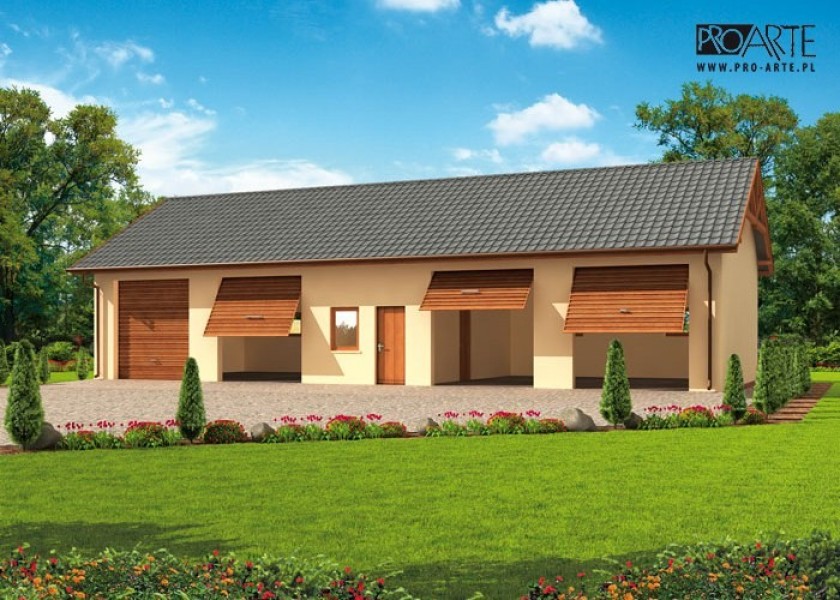 Projekt G49 budynku magazynowo-garażowegoWymiar bram garażowych 4x 2800x3000 Projekt budynku magazynowo-garażowego składa się z czterech egzemplarzy a w tym części architektonicznej, konstrukcyjnej i instalacji wewnętrznej elektrycznej. W projekcie załączone są podstawowe zestawienie stali, drewna i stolarki okienno-drzwiowej. Do projektu dołączamy bezpłatną zgodę na wprowadzenie zmian, oświadczenie projektantów o wykonaniu projektu zgodnie z obowiązującymi normami i przepisami oraz kserokopie uprawnień projektantów wraz z aktualnym wpisem do izby.